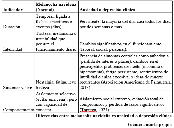 La vulnerabilidad emocional durante la navidad, a menudo denominada el "Síndrome de la Navidad" o Christmas Blues, surge de la discrepancia entre las altas expectativas sociales y la realidad personal (Morales, 2025; Taprega, 2024).